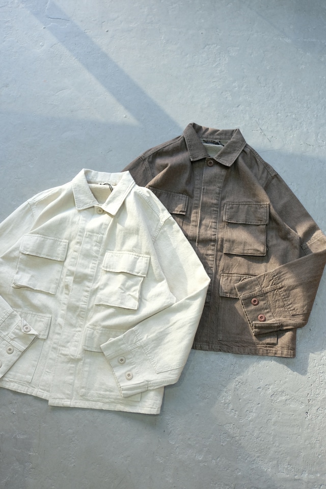"POR"PORTANCE" HEMP MIX BDU JKT size...S,M,L,XL IVORY,BROWN cotton 79% hemp 21% 180cm Msize 着用 S 着丈64身幅58肩幅48袖丈58 M 着丈68身幅61肩幅50袖丈62